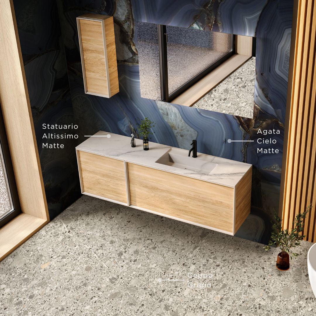 Kamar mandi adalah salah satu ruangan yang paling sering digunakan di rumah, sehingga memerlukan material yang tahan lama. QUADRA terkenal karena ketahanannya terhadap noda. Permukaannya yang keras dan padat membuatnya sulit ternoda, menjadikannya pilihan praktis untuk lingkungan kamar mandi.