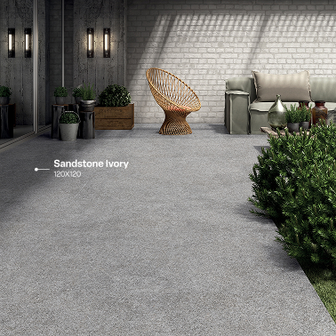 Keunikan Sandstone Ivory sebagai material lantai outdoor terletak pada motif salt and pepper-nya yang memberikan tampilan bertekstur sekaligus berfungsi praktis untuk menyamarkan noda ringan. Selain unggul secara visual, lantai outdoor ini juga memiliki ketahanan yang baik terhadap berbagai kondisi cuaca, mulai dari panas terik hingga hujan deras, menjadikannya solusi lantai outdoor yang tidak hanya estetis, tetapi juga tahan lama.