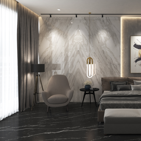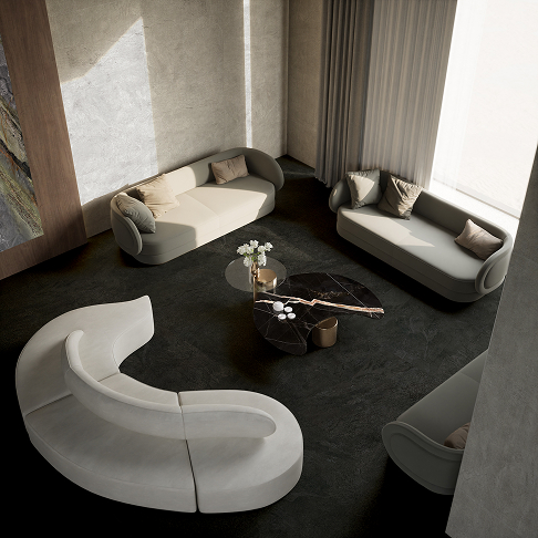 Mistico Nero akan memperkuat karakter ruangan dengan tampilan dramatis dan artistik. Gunakan sebagai lantai marmer di ruang kerja, ruang tamu, atau area lounge untuk menciptakan nuansa modern yang penuh kepribadian.