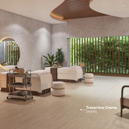 Batu Travertine banyak diaplikasikan pada lantai, dinding, hingga countertop. Selain tampilannya yang estetis, karakter Travertine yang tahan lama dan mampu menambah nilai artistik serta nuansa natural pada berbagai desain, mulai dari klasik hingga modern.