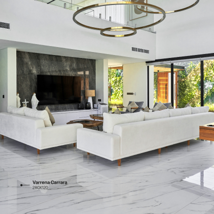 Permukaan polished memantulkan cahaya dengan sangat baik, menciptakan efek luas dan terang, terutama di ruangan kecil atau yang kurang pencahayaan alami. - Permukaan Halus dan Rata